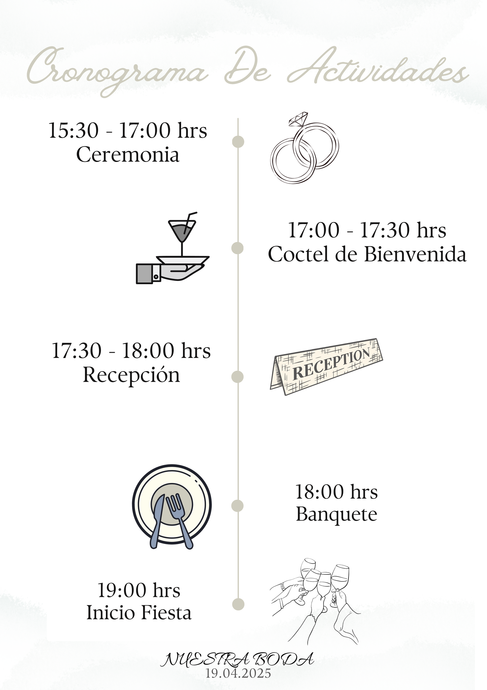 Apreciamos que los caballeros asistan formal elegante, y recordamos a nuestras queridas invitadas que el blanco es exclusivo para la novia.